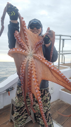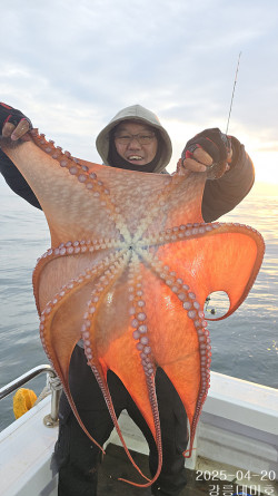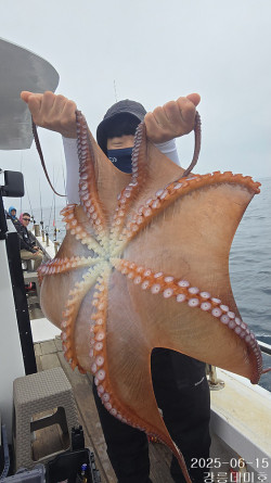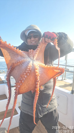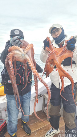 오늘은 여섯분 모시고 문어낚시 다녀왔습니다.아침에 배에 나가니 기온이 1도.오늘 문어들 또 추워서 안나오는거 아닌가 하는 노파심을 가지고 출발.포인트에 도착후 첫번째 올라온 문어1킬로 정도 되네요.지난번 문어 출조에서 대박치고 문어 두번째 오셨는데오늘도 스타트를 5킬로 오버로 끊으시네요.잠시뒤 또 히트.4.2kg또 히트. 지난번 오셔서 6마리 잡으셨는데 오늘도 연달아 히트.문어 낚시 실력자 인정이요. ^^오늘 인생 첫 문어낚시인데 다행히 한수 올리셨어요.3킬로 조금 넘네요.선수에 계시던 손님.계속 채비만 떨구다 드디어 한수 올리셨어요.2킬로 조금 넘네요.오늘 혼자 문어를 못잡고 계셨는데입항 5분전 드라마틱하게 버져비터로 문어 올리셨어요.사이즈도 3킬로 후반대로 괜찮네요.오늘은 방생 사이즈 없이 총8마리로 마무리했어요.다녀가신분들 수고 많으셨어요.내일은 대구라바로 달려봅니다.*** 강릉 데미호 예약 안내 ***예약문의 : 010-3310-1853오시는길 : 강원도 강릉시 주문진읍 해안로 1712-4홈페이지 : https://demi.sunsang24.com/