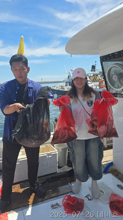 7월 6일 문어 락피쉬 복합 출조 조황입니다.7시간 종일 낚시중 3시간은 문어 나머지 4시간은 락피쉬 잡는 일정이였어요.아침 출항후 문어 포인트로 이동물도 적당히 가고 수온도 괜찮아서 그런지 문어들이 한두마리 타주기 시작합니다.크라켄은 못봤지만 3시간 가량 문어 낚시에 13킵 5방생 18마리 얼굴보고 문어를 마무리하고락피쉬 포인트로 이동.우럭 놀래미 광어로 다들 손맛 보시고 문어 락피쉬 복합 출조를 마무리했어요.7월 7일평일이고 날도 덥고 5시간 출조로 두분 모시고 출항했습니다.5시 출항 10시 입항했는데 오늘은 9시 넘어가니 본격 여름 날씨. 수온이 어제 보다 조금 나아져서 그런지 릭피쉬 활성도가 굉장히 좋네요.5시 출항후 2어 시간은 던지고 조금 있으면 물어줄 정도로 입질이 좋았어요.특히 지그헤드에 레드 스위밍 뮬렛에 반응이 좋았습니다.처음에 타이라바 프리리그 여러 채비 사용해 보셨는데 입질이 시원치 않아 지그헤드에 뮬렛으로 바꾼 이후 한두마리 잡기 시작.오늘 두분 조과입니다.우럭 참우럭 돌삼치 3종을 혼자 꽤 많이 잡으셨어요. ㅎㅎ무게를 재보니 10킬로 조금 넘네요.더운 여름 다녀가신 분들 모두 수고 많으셨어요. ^^ *** 강릉 데미호 예약 안내 ***예약문의 : 010-3310-1853오시는길 : 강원도 강릉시 주문진읍 해안로 1712-4홈페이지 : https://demi.sunsang24.com/