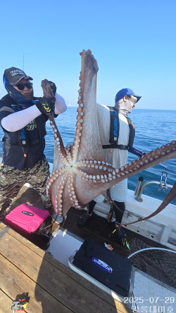 오늘은 다섯분 모시고 문어 낚시 다녀왔습니다.최근 강릉권 문어조과가 굉장히 좋았는데 이틀전부터 갑자기 들어온 냉수대에 문어 움직임이 많이 둔해진거 같아요.아침에 출항하며 앱을 보니 오늘도 20미터권 수온이 6도 7도를 왔다갔다 하는 냉수대에 쉽지 않겠구나 느끼며 출항.아침해가 떠오르네요.요즘 해만 뜨면 날씨가 너무 더워요. 7월 초부터 이러니 7월말 8월초 만만치 않는 여름이 될거 같아요.오늘 저수온에 문어가 많이 움직이지 않는 상항에도 4수로 선방하셨어요.2킬로 정도 되는 문어. 오늘 2킬로 한마리 1킬로 중반 한마리 두마리 하셨어요.나머지 분들도 두세마리씩 하셨는데 다섯분중 한분이 꽝을 치셔서 마음이 쓰였습니다.수온이 많이 안좋았는데도 다들 열심히 잡아주셔서 방생2마리 킵12마리로 마감.낮은 수온때문인지 큰놈들 얼굴을 못본게 아쉬움이 남는 하루였어요.수온이 조금 회복되어 다시 문어가 활발하게 움직여줬음 좋겠어요.*** 강릉 데미호 예약 안내 ***예약문의 : 010-3310-1853오시는길 : 강원도 강릉시 주문진읍 해안로 1712-4홈페이지 : https://demi.sunsang24.com/