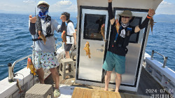 7월 24일 25일 조황입니다.먼저 7월 24일(목) 조황입니다.여섯분 대구 출조하셨어요.아침 첫 포인트부터 대구들이 잘 물어 주네요.인생 첫 대구낚시 오셨는데 꽤 많이 잡아내셨어요. 역시 대구 낚시는 처음이시라는데 마리수로 대구 잡아내시다 막판에 8자 대구도 한수 올리셨네요.축하드려요. ^^선미에서 꾸준히 잡아내시다 마지막에 대물까지24일은 아침부터 낚시 끝날때까지 대구가 꾸준히 물어누는 편이였어요.24일 대구조황입니다.봄 대구에 비해 사이즈도 많이 좋아지고 살도 많이 올랐어요.오늘도 7분 모시고 대구 출조 다녀왔습니다.3분은 대구낚시가 처음이라 3분 모두 대여장비에 대여채비로 대구낚시 하셨어요.선미에서 부부조사님중 여조사님이 먼저 8자 왕대구를 끌어 올리십니다.수동릴에 대구라바 채비로 120미터권까지 열심히 해주셔서 마리수 조과 올리셨어요.선수에서 연신 잡아내시며 만쿨하시고남편분도 아내분에 질세라 8자 조금 빠지는 대구를 끌어올리셨네요.오늘 선상 첫 입문 대구로 하셨는데 금방 적응하시고 제법 많이 잡아내셨어요.오늘 초중반 많이 고전하시다가 후반부에 우당탕 쏟아질때 많이 잡으셔서 쿨러 거의 채워가셨네요. 오늘 조과입니다.초보자 숙련자 모두 쿨러 가득 대구로 담아가셨어요.더운날 대구낚시 다들 너무 수고 많으셨어요.^^*** 강릉 데미호 예약 안내 ***예약문의 : 010-3310-1853오시는길 : 강원도 강릉시 주문진읍 해안로 1712-4홈페이지 : https://demi.sunsang24.com/
